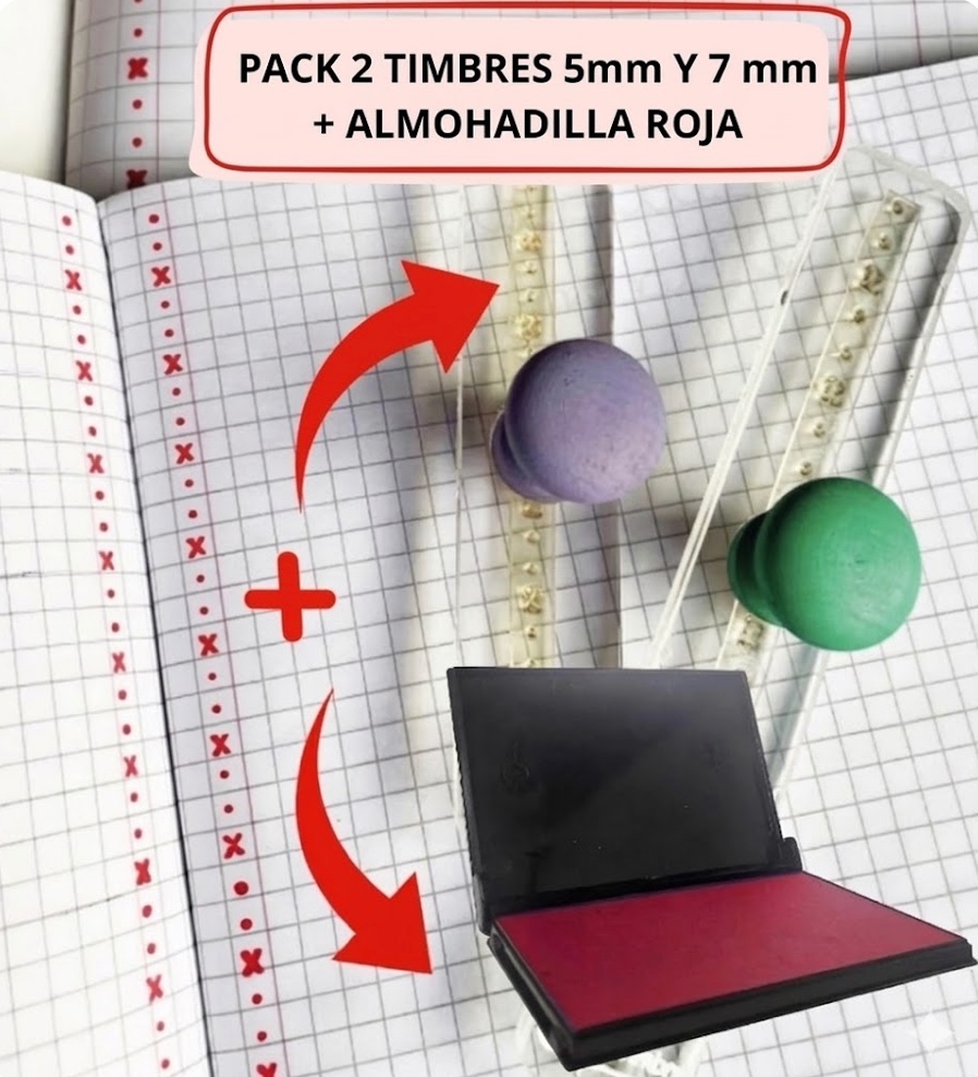 PACK PROFE 2 TIMBRES PUNTO PUNTO CRUZ (5 MM Y 7 MM) + 1 ALMOHADILLA ROJO METODO MATTE - NUEVO